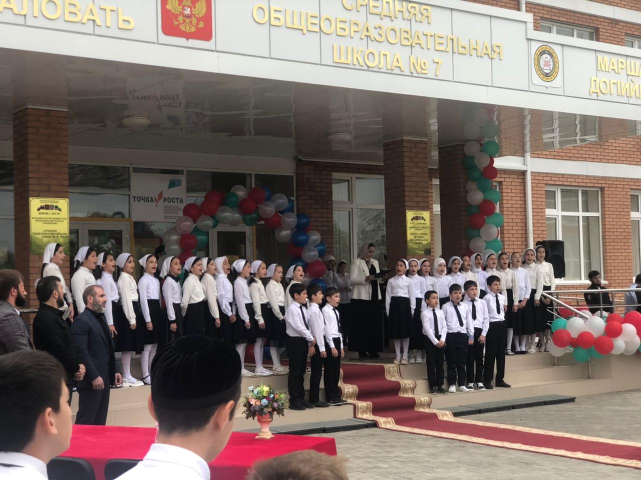 16.05.2022Сегодня утром в МБОУ «СОШ № 7» г. Аргун впервые прошла торжественная линейка с поднятием государственных флагов и исполнением гимна РФ и ЧР. Мероприятие посетили министр образования и науки Чеченской Республики Хож-Бауди Дааев, мэр города Аргун Илес Масаев и начальник Департамента образования города Аргун Сайдмагомед Усманов. Перед началом церемонии почетные гости обратились к обучающимся с приветственным словом.С самого раннего утра красивые и нарядные школьники вместе со своими учителями выстроились в школьном дворе. Все учащиеся и преподаватели хором спели гимны. Вслед за гимном РФ собравшиеся с большом воодушевлением исполнили и гимн Чеченской Республики. А самым предвкушающим и волнительным моментом торжественной церемонии стал подъём Государственных флагов РФ и ЧР. Тем самым аргунские школьники поддержали инициативу президента РФ В. В. Путина, направленную на духовно-нравственное и патриотическое воспитание детей и молодежи.По словам начальника Департамента образования г. Аргун Сайдмагомеда Усманова, введение традиции будет способствовать формированию чувства патриотизма и гражданственности у подрастающего поколения.«Гимны ребята уже знают, ведь их изучение включено в школьную программу. Благодаря патриотическому воспитанию мы сможем сохранить нашу историю и не допустить ее искажения», – прокомментировал руководитель Департамента.