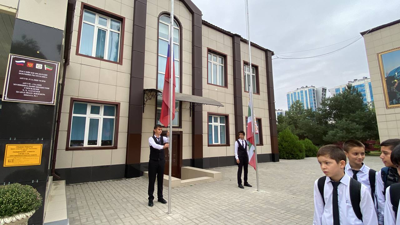 В городском округе города Аргун занятия в общеобразовательных учреждениях сегодня начались с поднятия флагов РФ и ЧР, а также под исполнение гимнов.