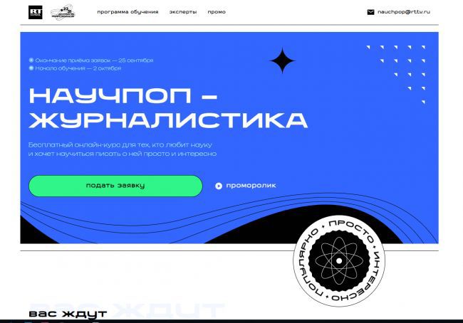 Подать заявку смогут все желающие, для этого необходимо заполнить форму на сайте курса https://school.rt.com/nauchpop/ и выполнить тестовое задание. Участниками курса станут заявители, набравшие наиболее высокие баллы по итогам экспертной оценки.