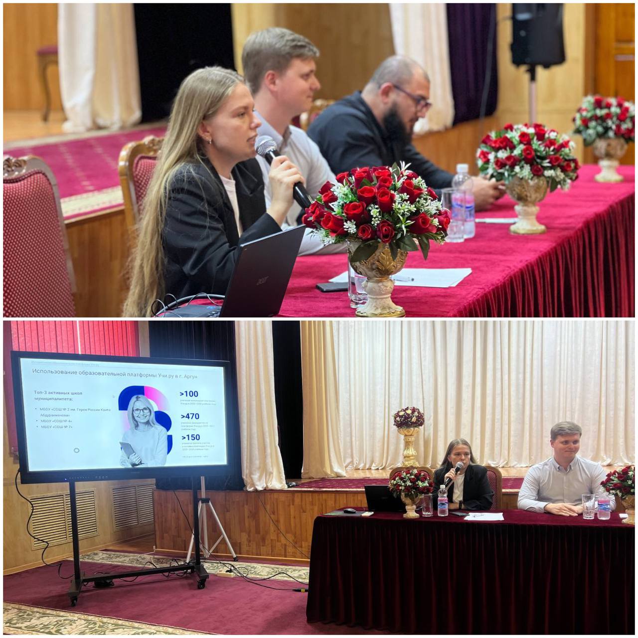 29.09.2023В рамках реализации плана мероприятий по проведению Года педагога и наставника в Чеченской Республике на базе МБОУ «СОШ № 1» г. Аргун им. Х.Х. Хататаева представители образовательной платформы Учи.ру Савельева Елизавета Евгеньевна и Вахромеев Андрей Дмитриевич провели семинар-совещание с заместителями руководителей образовательных организаций городского округа город Аргун.В рамках данной встречи были представлены новые курсы повышения квалификации для учителей на платформе Учи.ру, а также новый сервис для учителей начальной школы «Подготовка к уроку» и диагностики читательской грамотности и навыков 3К (коммуникация, кооперация, критическое мышление) в рамках формирования функциональной грамотности.Также участникам были представлены промежуточные результаты Всероссийской онлайн-олимпиады «Безопасные дороги», которая проводилась с целью повышения осведомленности обучающихся о ПДД.