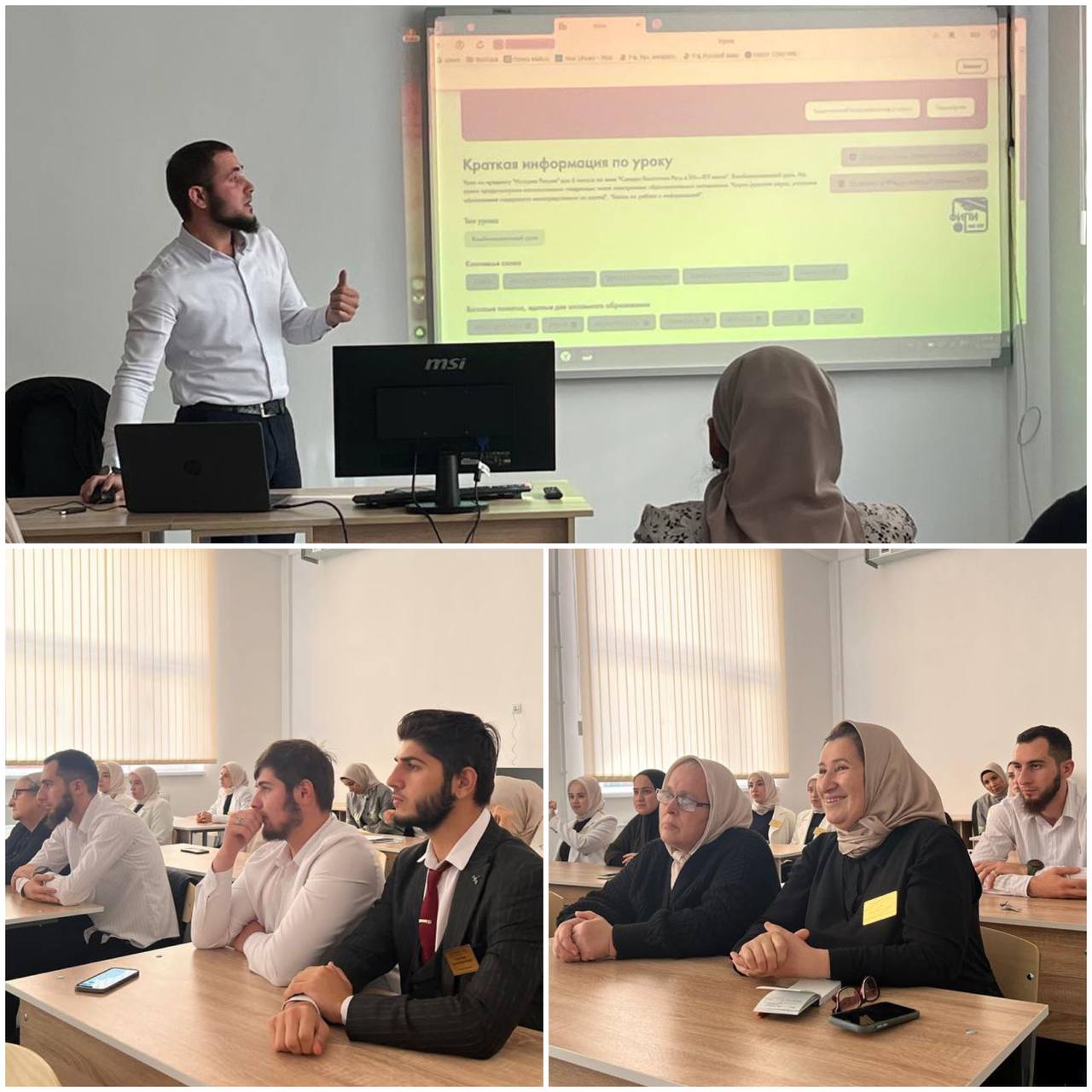 13.10.2023В рамках реализации плана мероприятий по проведению Года педагога и наставника в Чеченской Республике специалисты Департамента образования и региональные методисты провели на базе МБОУ «СОШ № 9» г. Аргун семинар для учителей на тему «Проектирование современного урока с использованием ЦОК». МБОУ «СОШ № 9» г. Аргун функционирует с 25 сентября этого года, и соответственно, коллектив школы нуждается в поддержке и методической помощи. Так, на данном семинаре присутствующим были разъяснены вопросы по наиболее важным аспектам работы педагога.На встрече раскрыли особенности проектирования современного урока: формулировка цели и задач урока, планируемых результатов, виды уроков, этапы уроков, составление самоанализа урока, приемы целеполагания и рефлексии.