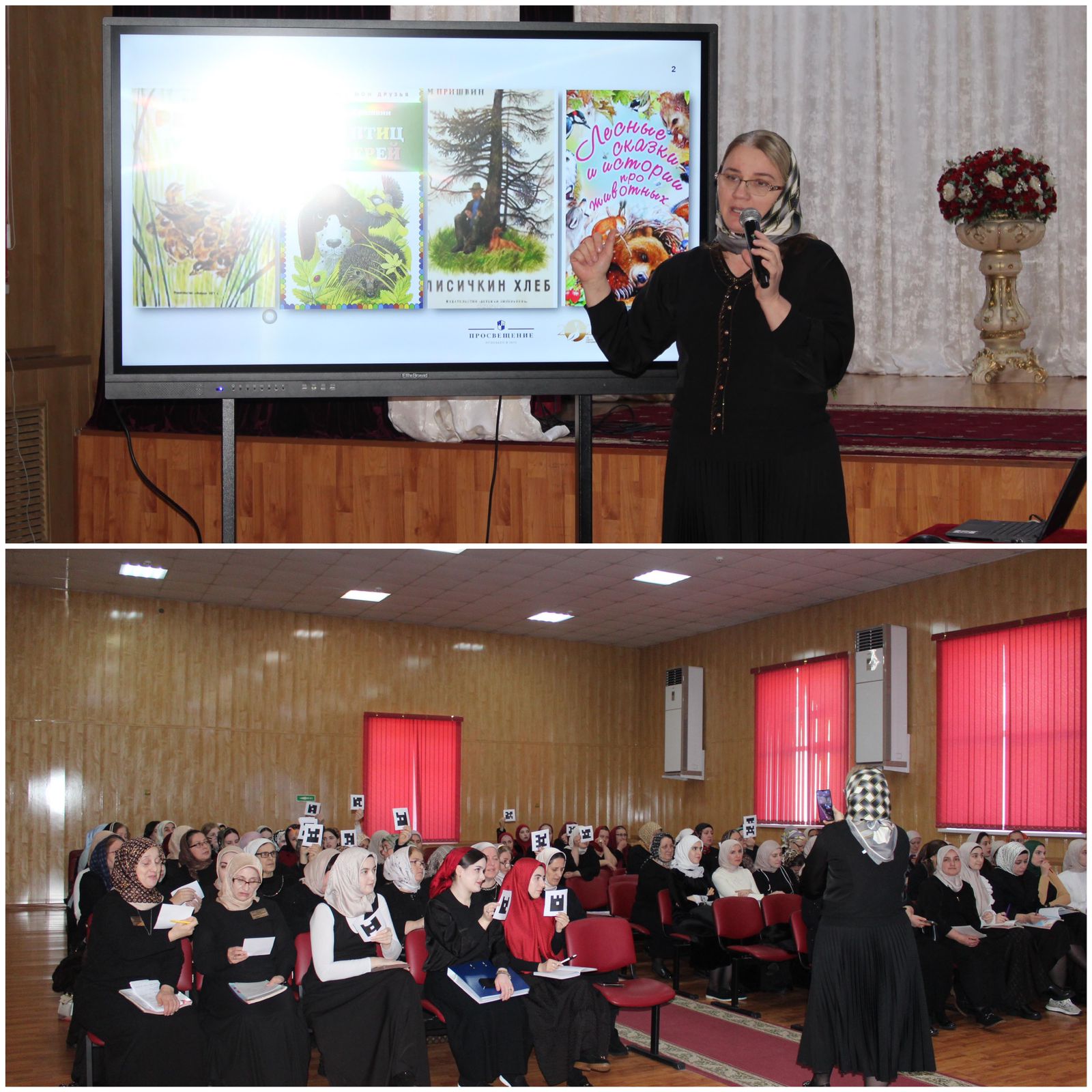 01.02.2024В рамках реализации проекта «ПРОдвижение» на базе МБОУ «СОШ № 1» г. Аргун им. Х.Х. Хататаева Центр начального образования ГБУ ДПО «ИРО ЧР» совместно с Департаментом образования провел обучающий семинар-практикум для учителей начальных классов и заместителей директоров по начальной школе городского округа город Аргун.Лектором выступила заведующая центром начального образования ГБУ ДПО «ИРО ЧР» Тайсумова Мадина Хароновна. Семинар-практикум проходил на тему: «Формирование умений составлять план текста в младшем школьном возрасте», задача которого состояла в том, чтобы формировать у учащихся начальной школы умения составлять план текста.