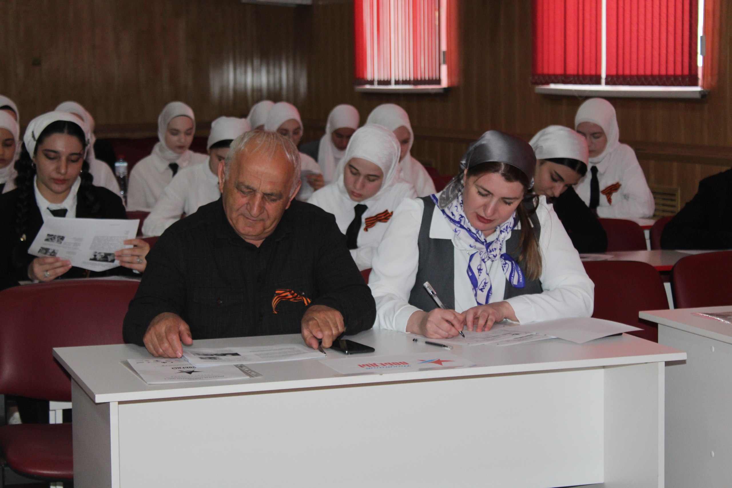 28.04.2024На базе МБОУ «СОШ Nº 1» г. Аргуна им. Х.Х. Хататаева прошла ежегодная патриотическая акция «Диктант Победы», приуроченная к 79-летию празднования Дня победы в Великой Отечественной войне.«Диктант Победы» дает возможность проверить свои знания по военной истории нашей страны, узнать новую информацию о забытых подвигах предков.Основной целью «Диктанта Победы» является объединение всех граждан России, повышение исторической грамотности и патриотического воспитания молодежи, формирование читательской компетенции учащихся, получение независимой оценки своих знаний о событиях Великой Отечественной войны, а также привлечение широкой общественности к изучению истории Великой Отечественной войны.Организаторами патриотической акции стали РДДМ «Движение первых» и Всероссийское движение «Волонтеры Победы» при поддержке партии «Единая Россия».В акции приняли участие: представители Парламента Чеченской Республики, Администрации и Мэрии г. Аргун, Департамента образования г. Аргун, члены РДДМ «Движение первых» (обучающиеся) и родители.