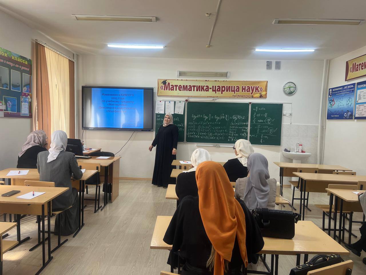 01.10.2024В соответствии с планом работы Департамента образования г. Аргун и оказания методической помощи педагогам, на базе МБОУ «СОШ № 1 г. Аргуна» им. Х.Х. Хататаева проведен семинар для учителей математики городского округа Аргун на тему: «Изменения в КИМ ЕГЭ 2025 года. Демоверсии, спецификации, кодификаторы. Методический разбор сложных заданий(тем) ГИА 2025». В данном семинаре приняли участие 15 учителей математики городского округа.Семинар организован с целью ознакомления учителей математики с изменениями КИМ ЕГЭ 2025 года, спецификацией, кодификатором и оказания методической помощи с разбором сложных заданий из демоверсии.Спикером выступила региональный методист по математике, Телуева З.З.