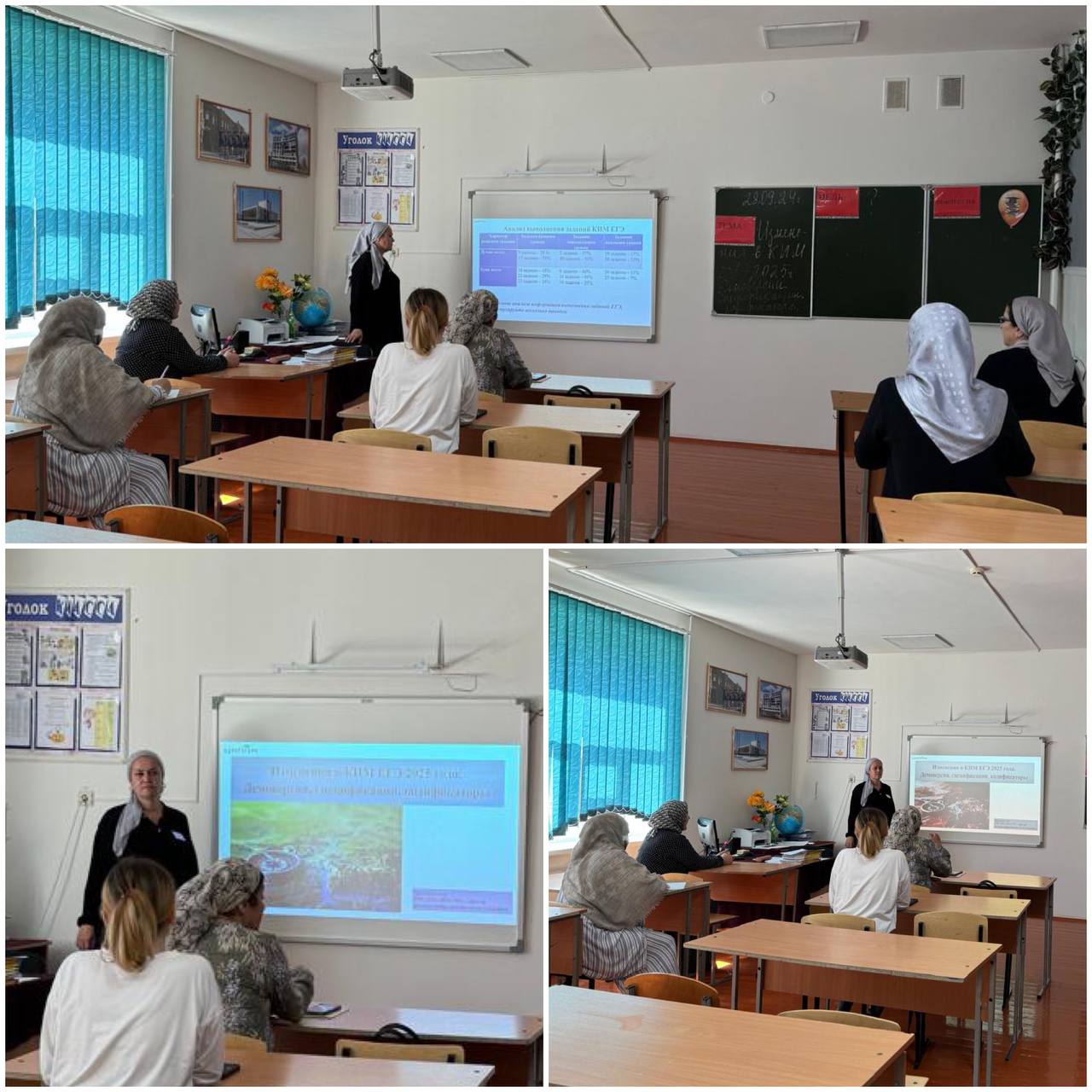 08.10.2024В соответствии с планом работы Департамента образования г. Аргун и оказания методической помощи педагогам на базе МБОУ «СОШ № 5» г. Аргун им. М.Б. Халикова состоялся семинар для учителей географии городского округа Аргун на тему: «Изменения в КИМ ЕГЭ 2025 года. Демоверсии, спецификации, кодификаторы. Методический разбор сложных заданий(тем) ГИА 2025».На данном семинаре приняли участие 12 учителей географии общеобразовательных организаций городского округа. Цель семинара: ознакомить учителей географии с изменениями КИМ ЕГЭ 2025 года, спецификацией и кодификатором, а также оказать методическую помощь с разбором сложных заданий из демоверсии.Спикером выступила региональный методист по географии Джумаева Д.Д.