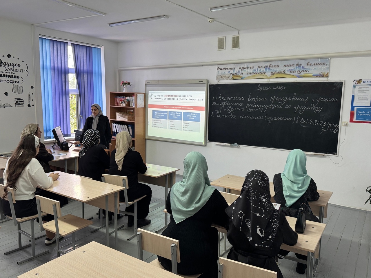 11.11.2024В соответствии с планом работы Департамента образования г. Аргун и оказания методической помощи педагогам на базе МБОУ «СОШ №1 с. Бердыкель» региональный методист по русскому языку Магомедова А.С.-Э. провела семинар для учителей русского языка и литературы городского округа.