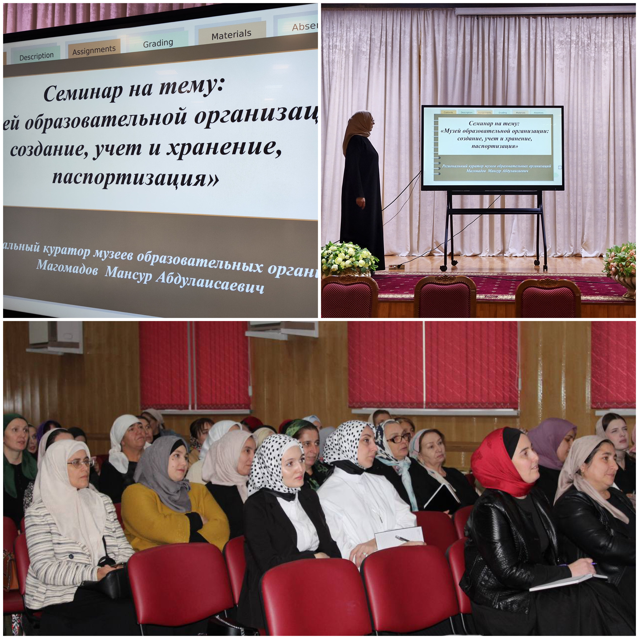 11.11.2024В соответствии с планом мероприятий по развитию школьных музеев ЧР на 2024-2025 учебный год, на базе МБОУ «СОШ №1» г. Аргуна им. Х.Х. Хататаева Департамент образования провел семинар на тему «Музей образовательной организации: создание, учет и хранение, паспортизация».