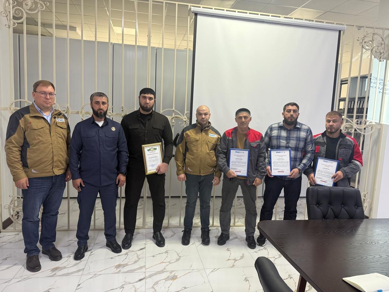 В завершение мероприятия Жамалдаев А-Р.Ш. от Минэкономтерразвития ЧР вручил благодарственное письмо директору АО «Чеченцемент» Айбаеву И.С-С. за организацию рабочей группы в ходе реализации мероприятий. Также благодарственные письма от ФЦК были вручены Юсупову И.Р., Татиеву М.С. за активное участие в реализации мероприятий и внедрении системы 5С, и Солтаматову А.В. за координацию деятельности рабочей группы и управление рабочим процессом.