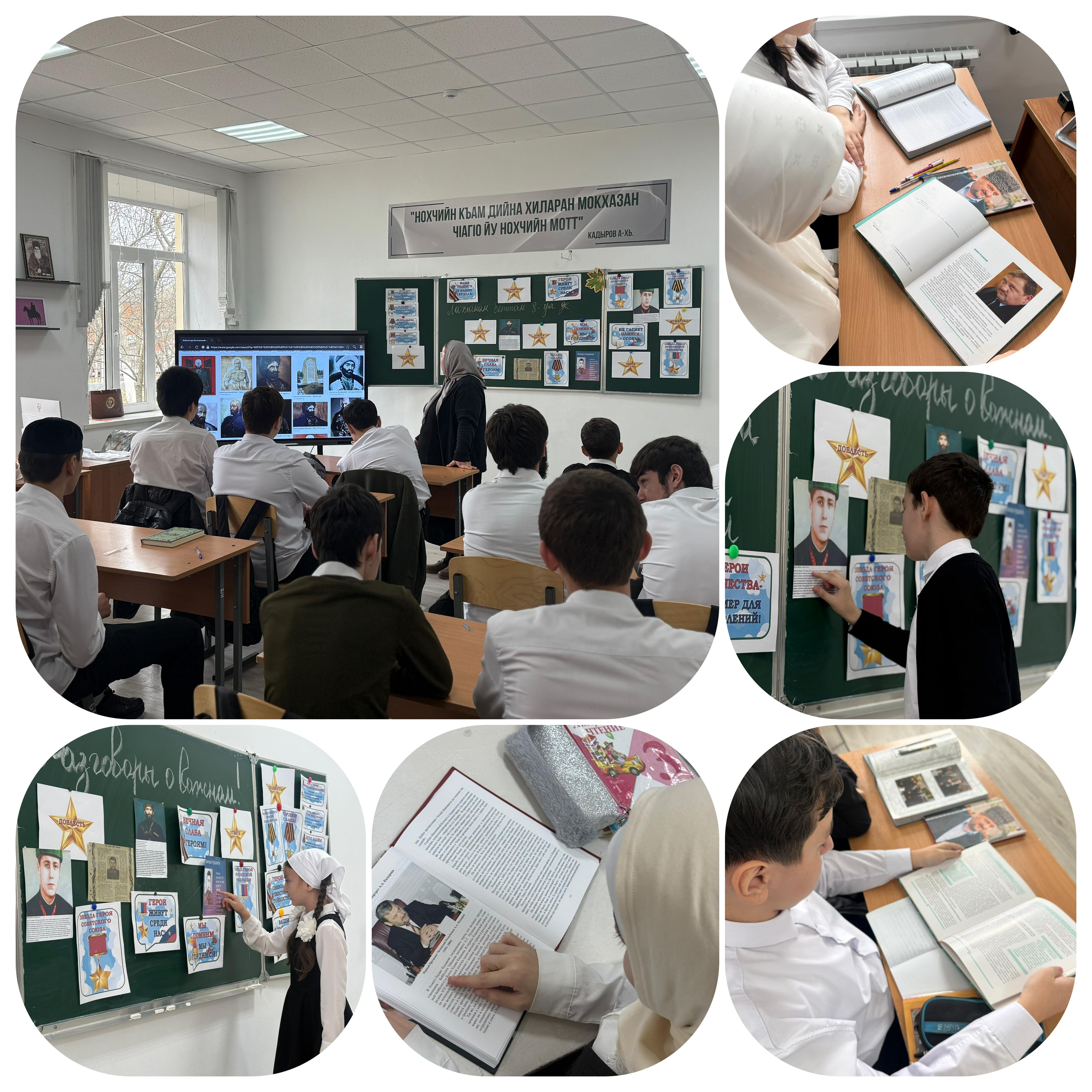 8 декабря в МБОУ «СОШ №1 с. Чечен-Аул» во всех классах были проведены тематические классные часы, посвящённые Дню Героев Отечества. Учащиеся узнали много нового про Героя России Ахмата-Хаджи Кадырова: о его жизненном пути, значимой роли в истории Чеченской Республики, о его стремлении к миру и стабильности, а также о его трудах, направленных на укрепление безопасности и единства страны. Ребятам были представлены факты о его личных качествах, гражданской позиции и вкладе в развитие родного региона.