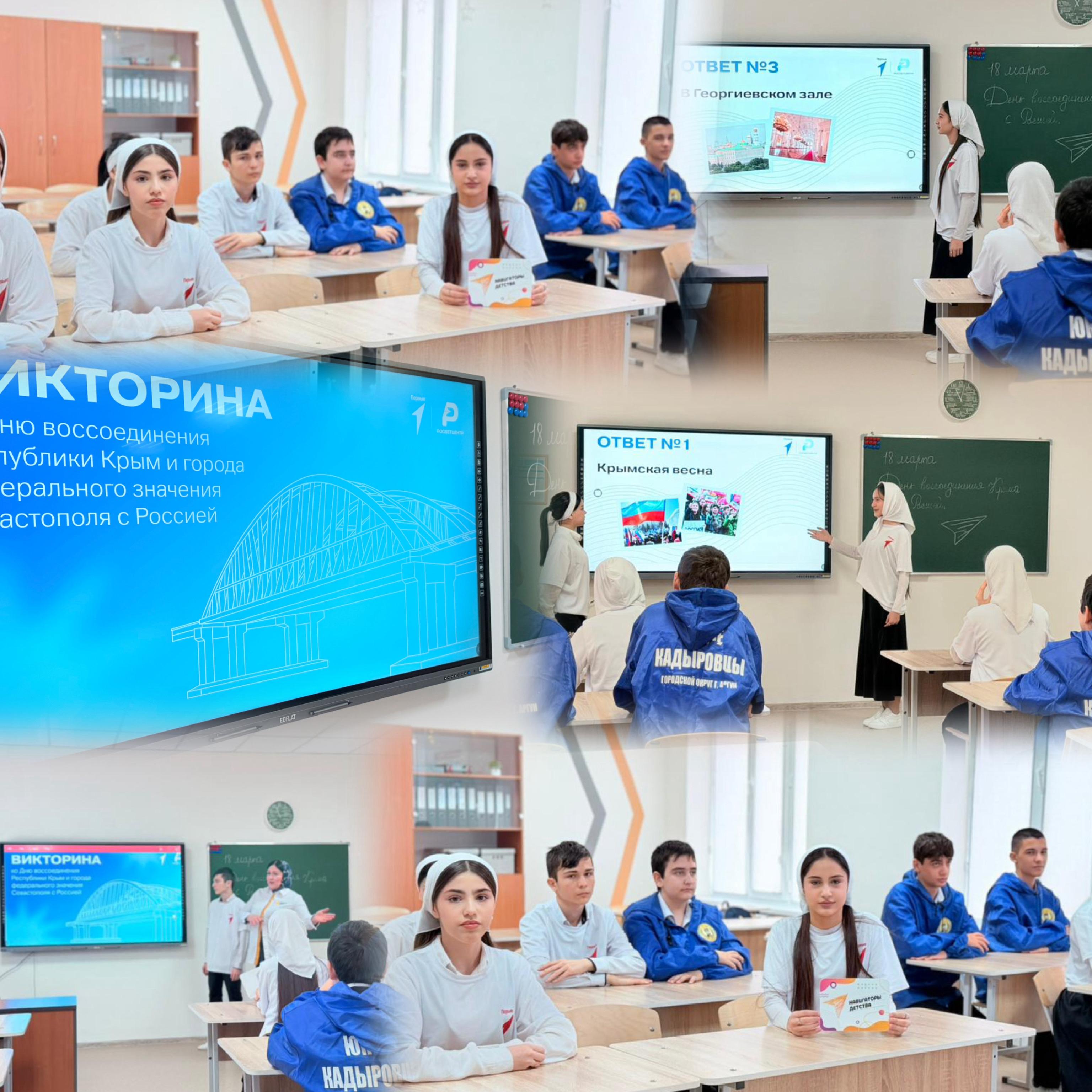 В МБОУ «СОШ №2» г. Аргуна имени Героя России Канти Абдурахманова советник директора по воспитанию Э.Ш. Абубакарова вместе с активистами клубов ПК «Путин», «Юные Кадыровцы» и «Движение Первых» провела викторину по истории Крыма ❓. Викторина состояла из 15 вопросов разного уровня сложности, от общеизвестных фактов до более детальных, проверяющих глубину знаний.