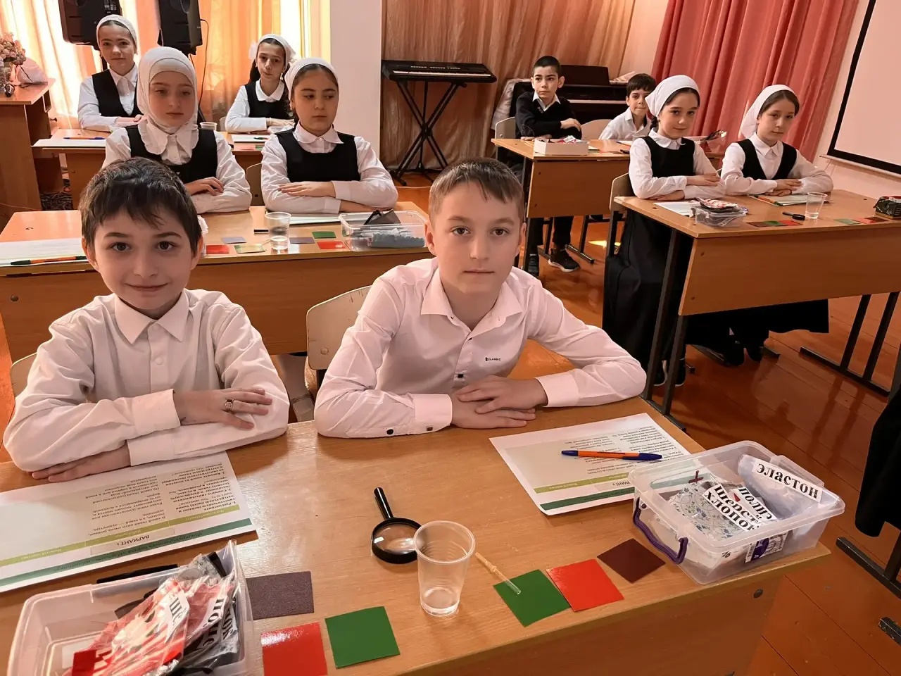 Своим мастерством с коллегами поделилась Алавдинова Хава Хасановна, учитель начальных классов СОШ №4. Для учащихся 4-го класса она провела увлекательный урок труда (технологии) на тему «Синтетические ткани и их свойства».