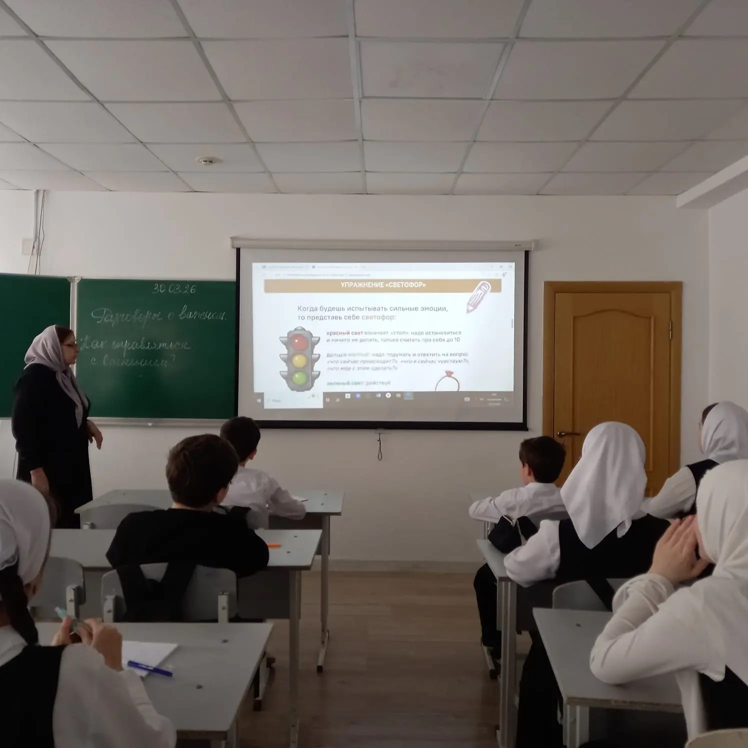 30 марта 2026 года в МБОУ « СОШ 4» г. Аргун прошло внеурочное занятие «Разговоры о важном» по теме: «Как справляться с волнением?».Цель занятия: осмысление обучающимися понятия «волнение»; развитие навыков самонаблюдения (рефлексии) и эмоционального интеллекта через освоение конкретных техник саморегуляции для применения в стрессовых ситуациях; формирование осознанного отношения к заботе о своем физическом и психологическом к формированию полезных привычек. Занятие началось с просмотра видеоролика-анонса занятия с Кариной Каграманян, беседы о переживаниях и волнении.Далее обучающиеся послушали и обсудили видеоролик-интервью с российской фигуристкой Анной Щербаковой, выполнили практическое задание «Палитра эмоций», потренировались в выполнении упражнений «Волшебный камень», «Мороженое», посмотрели фильм Движения Первых «День здоровья», выполнили интерактивные задания «Кроссворд», «Природа маркеров волнения», «Волнение или паника: найди разницу», «Правда или вымысел». В завершение занятия ребята заполнили рабочий лист по теме занятия, и пришли к выводу, что когда человек умеет владеть своим телом, различать и правильно называть свои эмоции, ему намного легче справляться с волнением. Правильное дыхание, умение вовремя отвлечься и подумать о чем-то позитивном, светлом и добром помогут вам приручить свое волнение, превратив его в спящего на руках котенка…